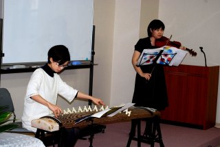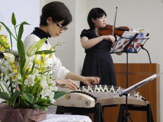 続く第二部では、AVANTI(アバンティ)が、ヴァイオリンと琴との演奏でした。和洋の楽器がみごとに一つとなったハーモニーで、会場全体が引きつけられました。演奏曲は『六段の調べ』『サクラサクラ』『Energy Flow』『春の海』でした。