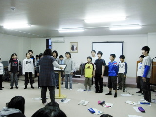 - 中高生「西東京教区」合唱団、男子の発声練習