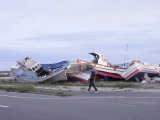 車で20~30分ほど走り、海岸沿いの町に出てみると、全半壊した家屋が多く残り、場所によっては地域全体が壊滅的な惨状で、言葉を失いました。港には、ぐしゃぐしゃに変形した乗用車や漁船などが、一カ所に集められて、そのままの姿になっていました。